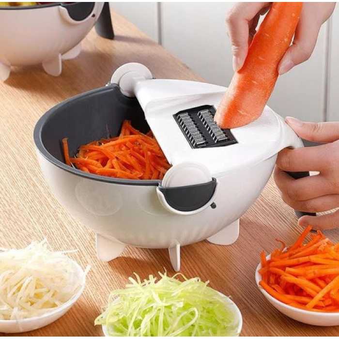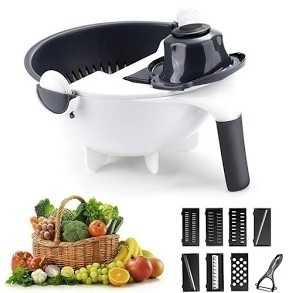 Feliator de legume cu strecuratoare va deveni ajutorul preferat in bucatarie. Faliati legumele sau fructele in conformitate cu ideile si cerintele dumneavoastra. Puteti alege unul din 5 atasamente diferite care pot fi inlocuite cu usurinta. Legumele si fructele pot fi clatite imediat cu ajutorul strecuratorului rotativ, in care legumele feliate cad drept. Sunt incluse o protectie pentru degetele pentru o siguranta maxima si un decojitor de legume. Legumele decorate pe o farfurie vor incanta nu numai iubitorii de mancare.