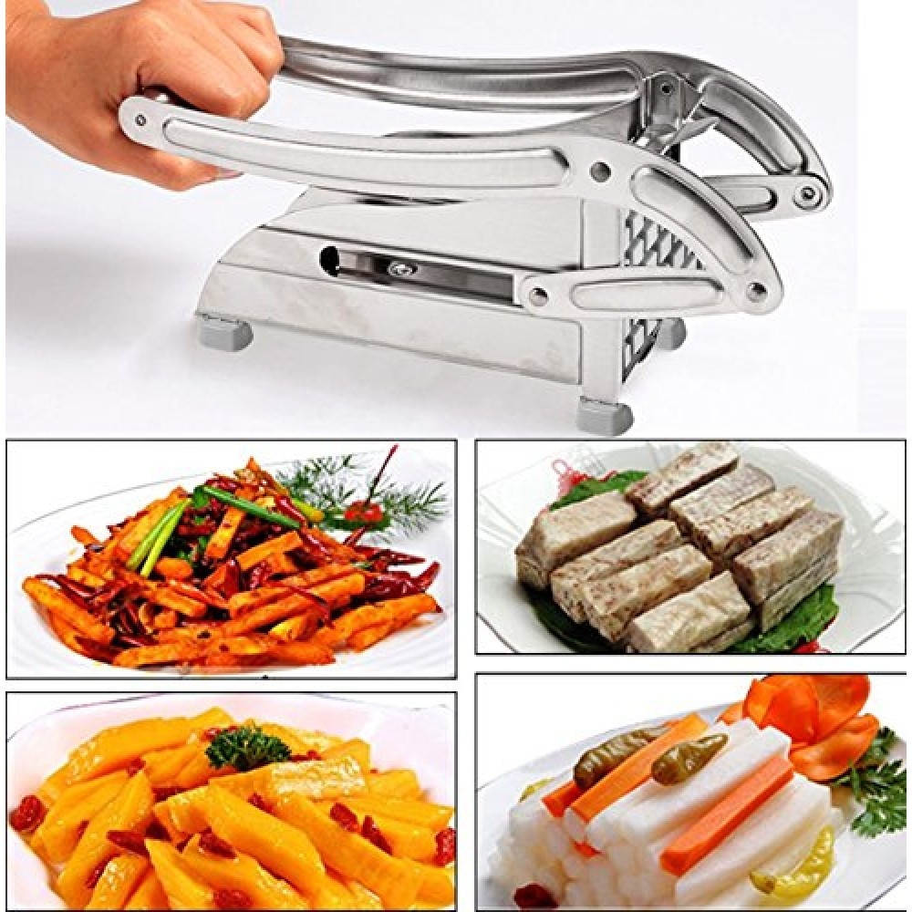 Aparatul este rapid și simplu de folosit fiind dotat cu ventuză impotrivă alunecării de pe suprafața pe care este așezat iar lamele sale din oțel inoxidabil taie printr-o simplă apasare, cartofii, legumele sau fructele după dimensiunea preferată și în mod egal.