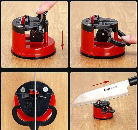 Dar nu o sa uitam sa iti precizam si faptul ca aparatul de ascutit este prevazut cu o ventuza foarte rezistenta ce permite ascutitorului sa se fixeze cu usurinta pe orice suprafata!