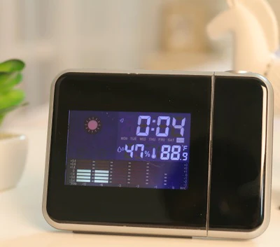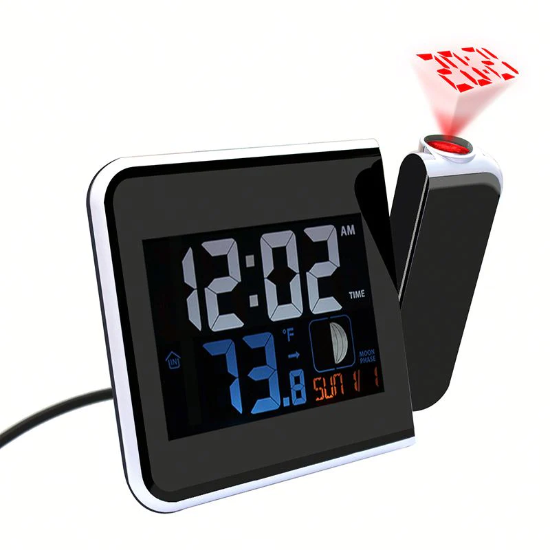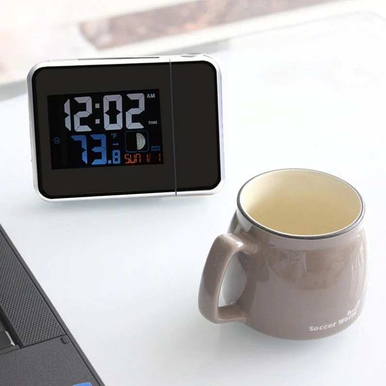 Ceas multifunctional WatchProjector cu capacitate de a afisa ora, calendarul, ziua saptamanii, si senzori pentru a urmari umiditatea si temperatura.