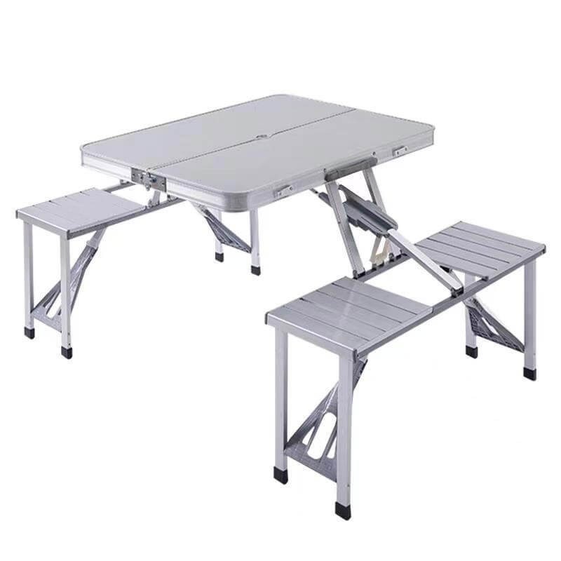 Masuta pliabila cat si cele 4 scaune pentru picnic sunt realizate din aluminiu. Acestea sunt usor de montat, demontat, depozitat si transportat datorita dimensiunilor restranse.