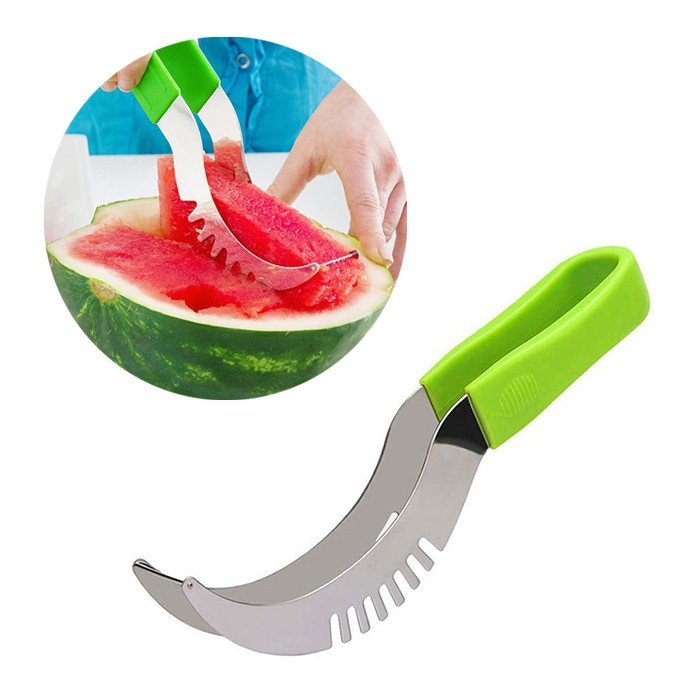 Cuțitul pentru pepene verde este o ustensilă de bucătărie indispensabilă pentru zilele călduroase de vară, întrucât îl puteți lua cu dumneavoastră în vacanțe sau puteți să îl folosiți la petreceri și picnic-uri, când vreți să vă răcoriți cu fructe suculente. Puteți utiliza, cuțitul curbat pentru a tăia prăjituri, pepeni și alte alimente.