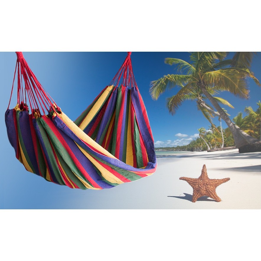 Hamacul este confectionat din bumbac si poliester si este extrem de rezistent, usor si ocupa putin spatiu, de aceea nu ar trebui sa lipseasca din recuzita dumneavoastra de camping sau gradina fin perfect pentru vara.