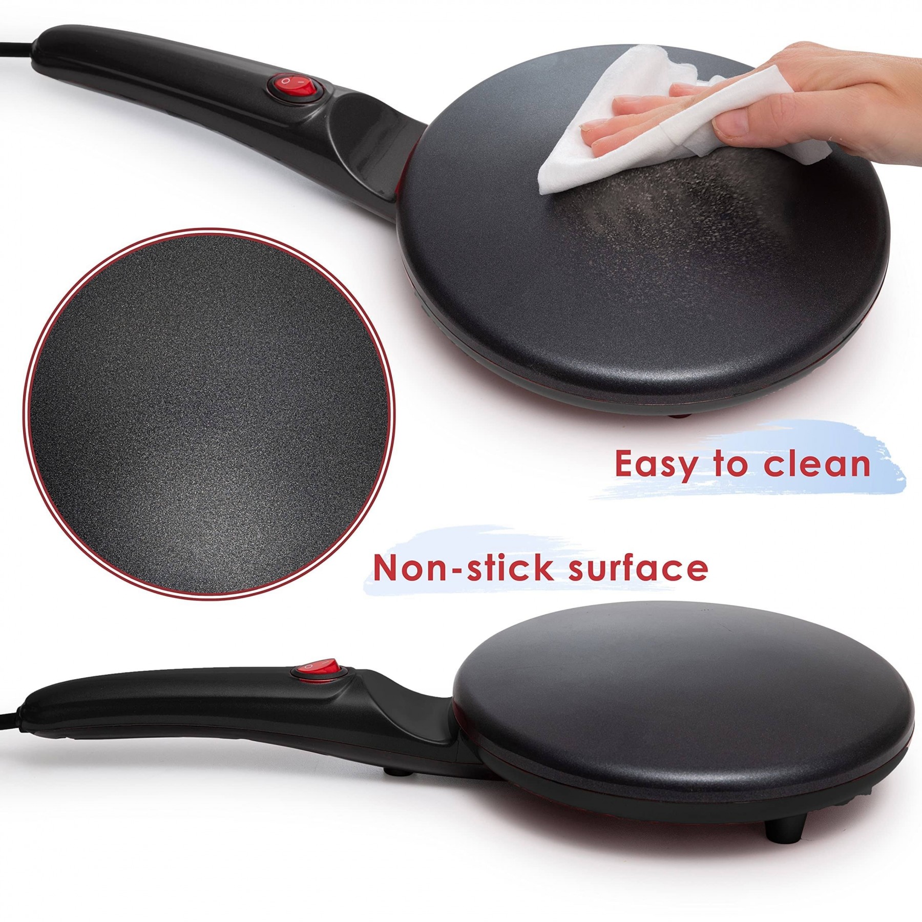 Aparatul de clătite este un aparat la îndemână pentru a face mai ușor clătitele. Este dotat cu un strat anti-aderent rezistent și cu farfurie – tot ce trebuie să faci este să scufunzi zona încălzită în aluat, să aștepți 20 secunde și apoi să savurezi clătite perfecte.