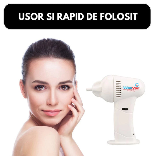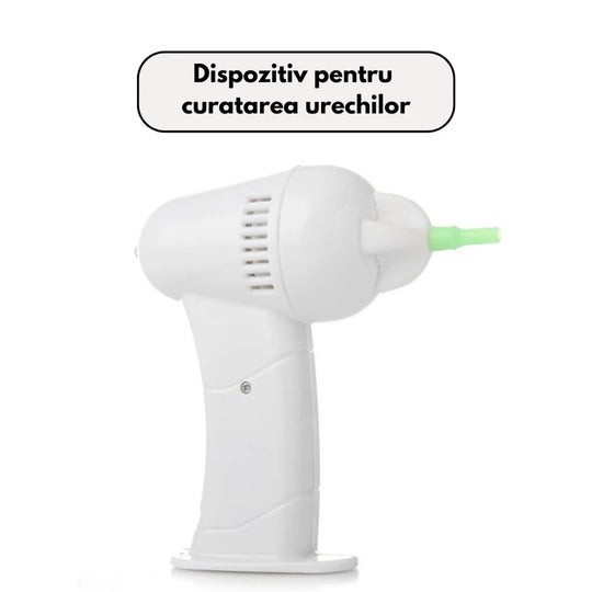 Acest aparat de curatare, avand efectul de vacuum, nu necesita introducerea adanc in interiorul urechii si aspira de la "distanta".