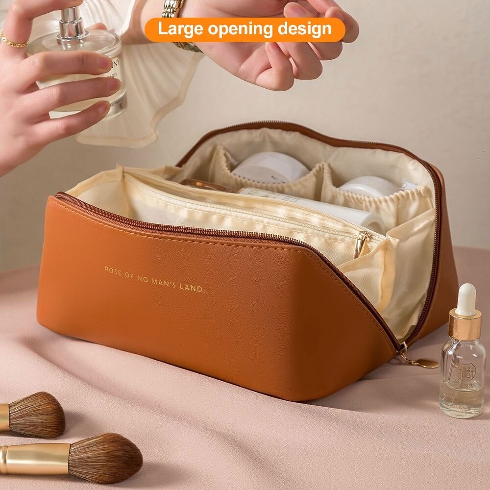 Geanta portabila pentru cosmetice din piele sintetica, cu cinci compartimente, un compartiment mare, un compartiemt cu fermoar si trei compartimente deschise. Pe partea frontala geanta are un maner pentru a facilita transportul. - Recenzii