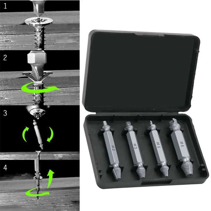 1x SET de 4 bucati - Burghie extractoare pentru suruburi defecte sau rupte